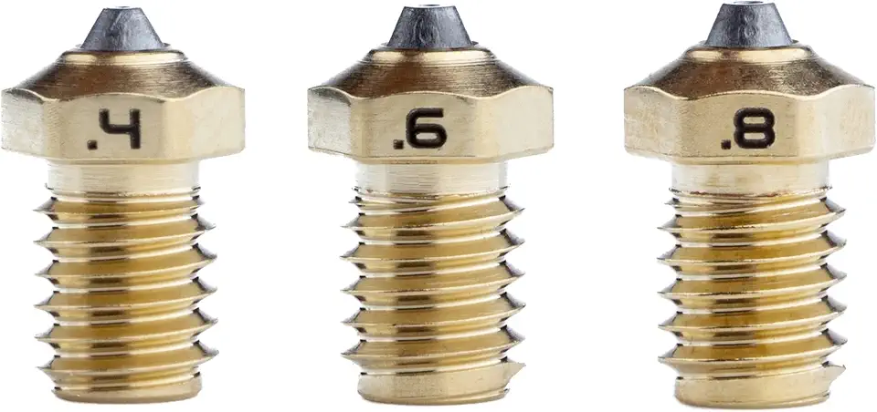 Diamondback Nozzles – V6 Compatible Polycrystalline Solid Diamond Tip 3D Printer Nozzles-Extrusion Efficiency-Any Filament-Long Life-Layer Adhesion-USA Made, 3-Pack (1.75mm x 0.4mm, 0.6mm & 0.8mm)