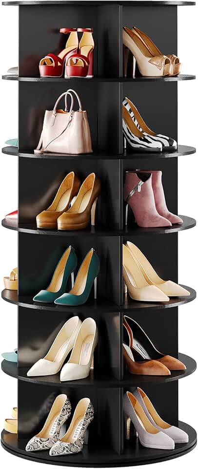 SpaceAid Black 6-Tier Spinning Rotating Shoe Rack Organizer, Shoe Display Tower Lazy Susan, Revolving Shoes Rack StorageOrganization, 360 Vertical Bags Holder Rotate Organizer