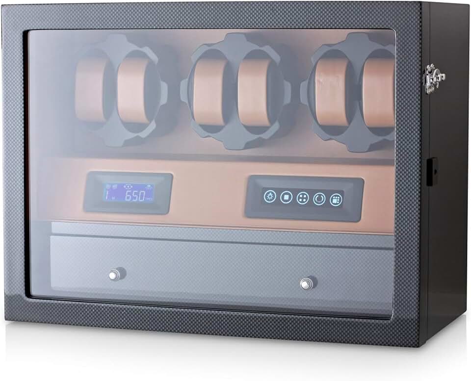 6 Watch Winder with Jewelry Storage Drawer, LCD Display, Touch Control and Interior Backlight
