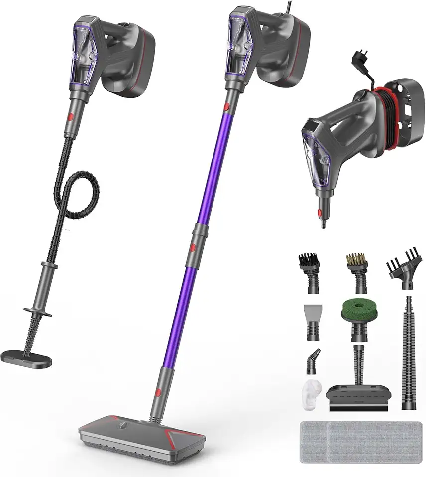Steam Mop for Floor Cleaning - 29 in 1 Heavy Duty Handheld Steam Cleaner Auto & Manual Powerful Steamer for Hardwood Tile Laminate Marble Grout Kitchen Bathroom Car Window, Wall Mount & Wire Box