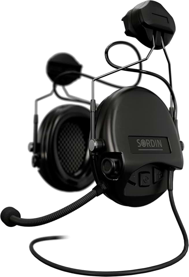 Sordin Supreme MIL CC Ear Defender - Active Military Ear Muffs - ARC rails & Nexus TP120-Downlead
