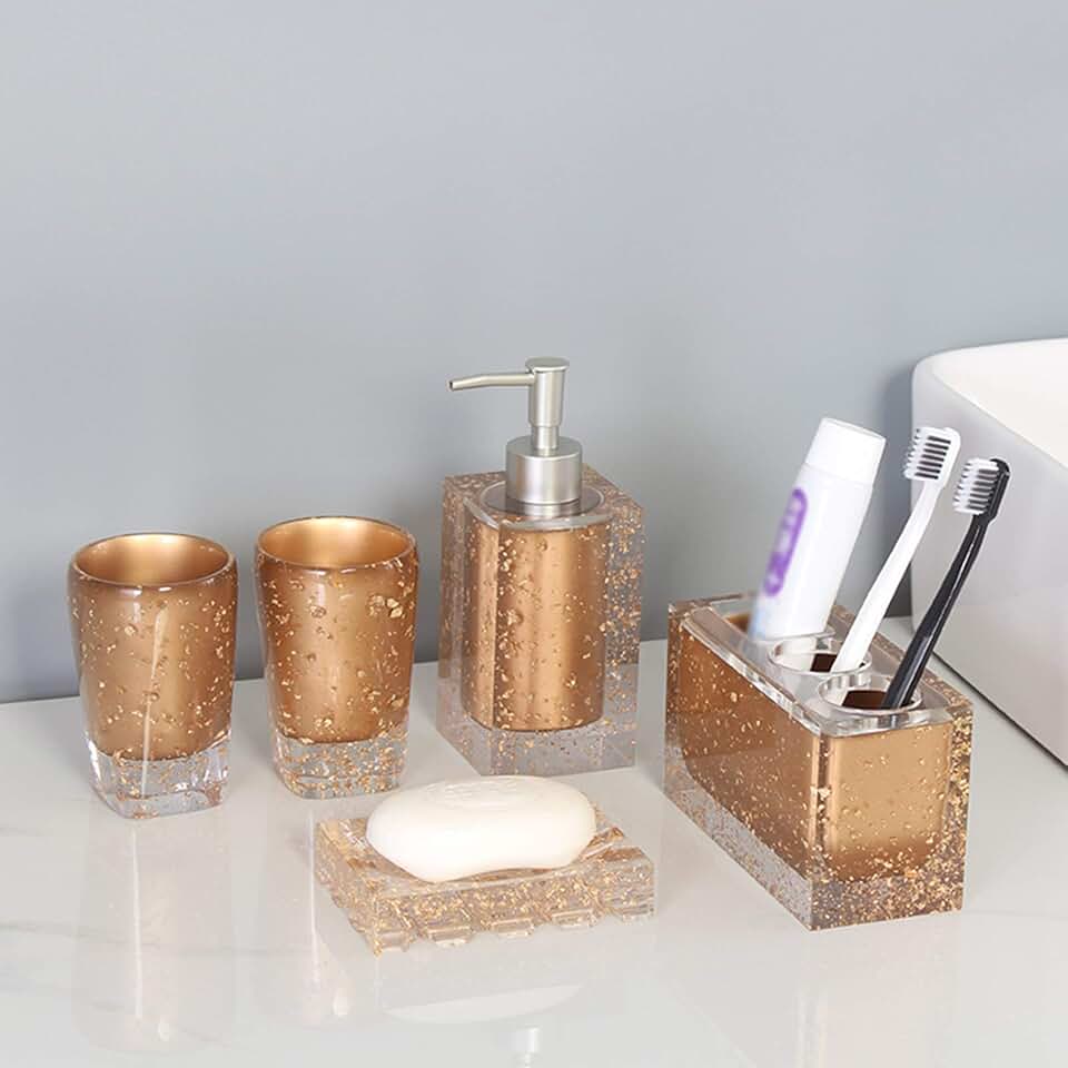 Starry Sky Bathroom Accessories Sets, Translucent, Resin Material, Modern Bathroom Accessory Set (Golden 5)