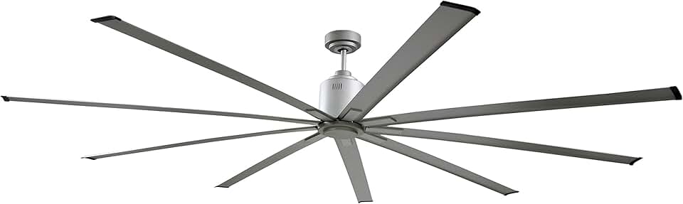 96" Industrial Indoor Ceiling Fan, 6 Speed with Remote, Silver