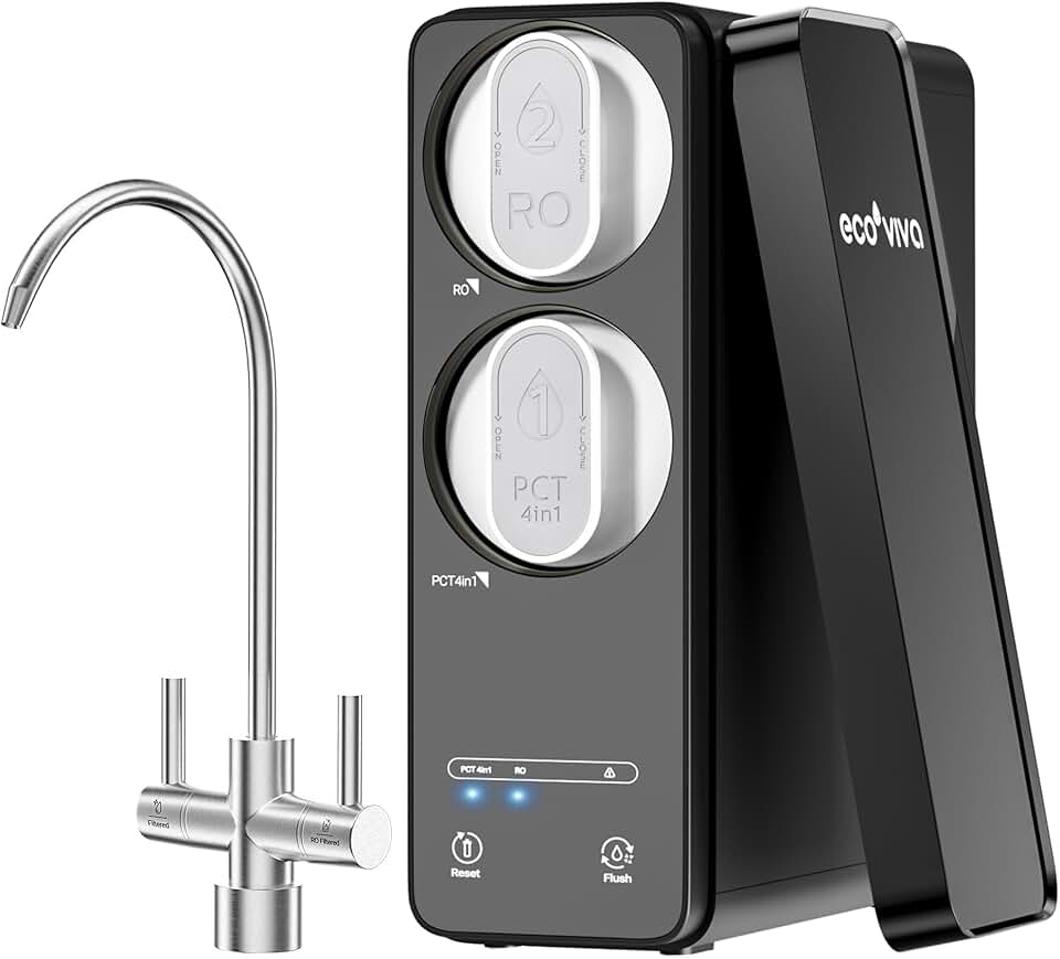 Reverse Osmosis System, 600GPD Tankless Reverse Osmosis Water Filter, 8 Stage Filtration Under Sink RO System, 2.5:1 Pure to Drain, Filter Life Monitor, RO&Filtered Water Options(RO600 Black)