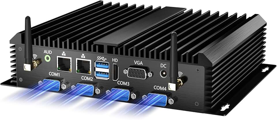 Fanless Mini PC, Industrial Desktop Computer Core i3-5005U 2.0GHz, Windows 10 Pro, 8GB RAM, 256GB SSD, 2xNICs, 6xCOM RS232, 4xUSB 3.0, HDMI/VGA Ports, Auto Power On, Full Metal Case