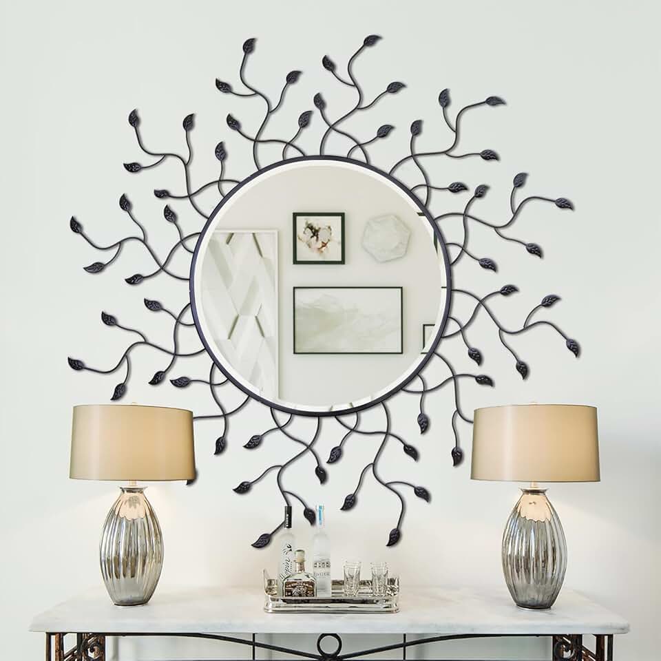 Chende 47" X 47" Large Mirror for Wall Decor, Round Decorative Wall Mirror for Dining Room with Removable Leaves, Beveled Edge and Metal Frame, Modern Accent Mirror for Home Decor