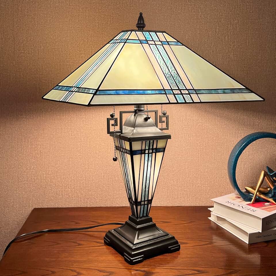 ARTZONE Tiffany Table Lamp with Nighlight [2-Lights][W16''xH24''], Tiffany Table Lights Antique Stained Glass Bedside Table Lamp for Bedside/Desk Reading/Living Room/Home Office/Bedroom