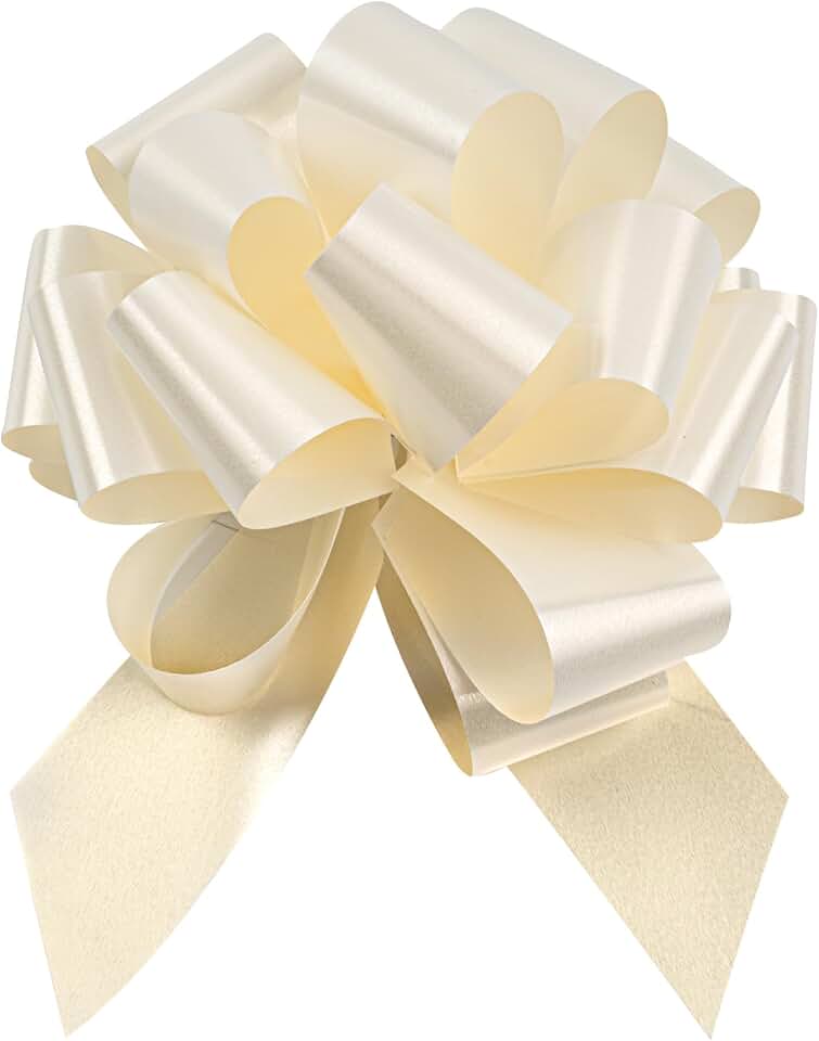 Restaurantware Gift Tek 5.5 Inch Ribbon Pull Bows 1000 Satin Pull Bows - 20 Loops Instant Pull Design Cream Plastic Flower Bows For Gifts Large For Wedding Baskets And Gift Wrapping
