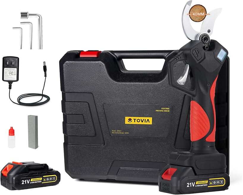 Electric Pruning Shears, T TOVIA Cordless Tree Pruner with 2 Pack 21V Lithium Battery, SK5 Blades, 1.6 Inch Cutting Diameter, Compatible for Makita 18V Battery