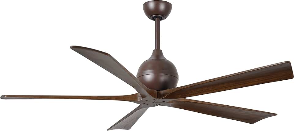 Matthews IR5-TB-WA-60 Irene Indoor/Outdoor Damp Rated 60" Ceiling Fan with Remote & Wall Control, Silent DC Motor, 5 Walnut Solid Wood Blades, Textured Bronze