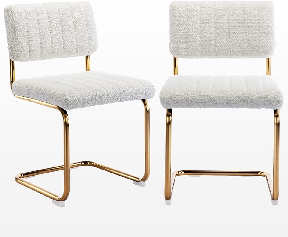 Zesthouse Mid Century Dining Chairs Set of 2, White Boucle Dining Room Chairs with Gold Legs, Upholstered Armless Accent Chairs Side Chairs for Living Room