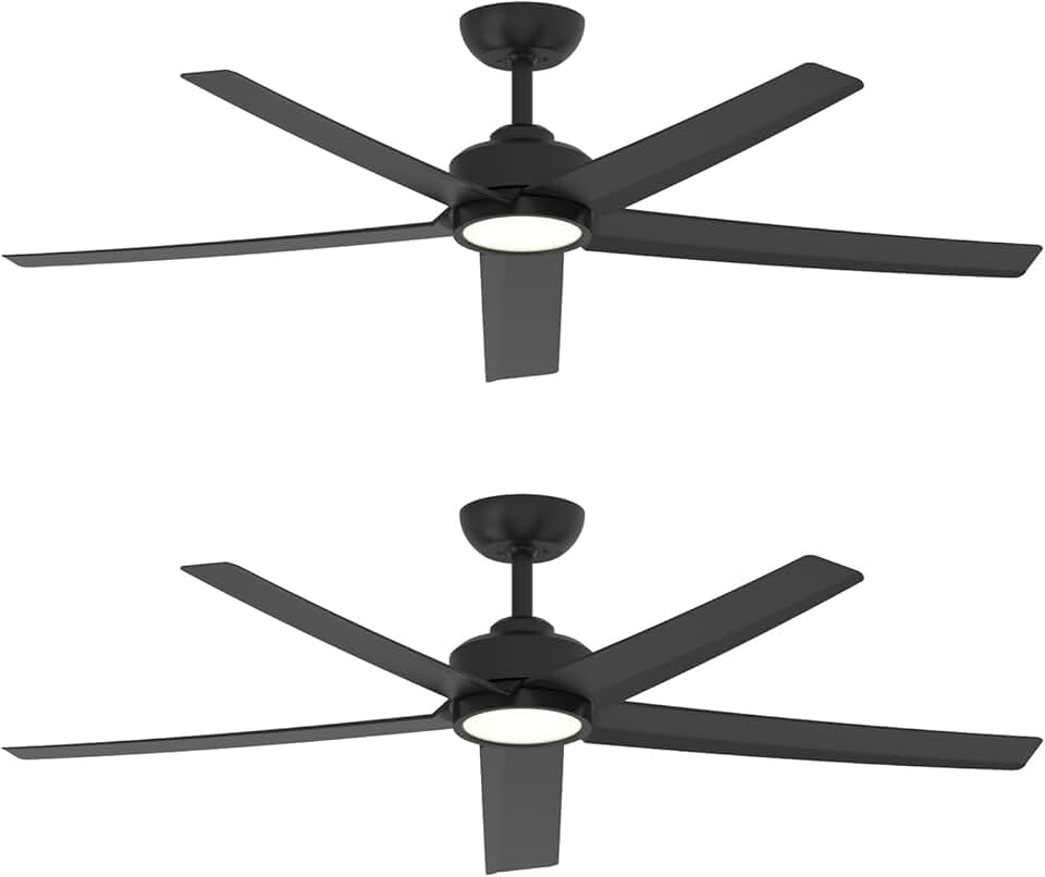 ocioc 52 inch Ceiling Fans with Lights, 2 Pack Black Ceiling Fan with Light and Remote Control, 3CCT, Quiet DC Motor, 5 Blades Modern Ceiling Fan for Living Room Farmhouse Bedroom