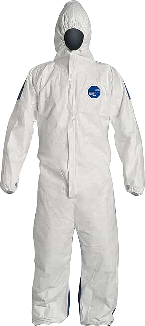 DuPont Tyvek 400D Protective Coverall with ProShield 10 Back, Zipper Front, Hood and Elastic Cuffs, White/Blue, 3X-Large, 25-Pack