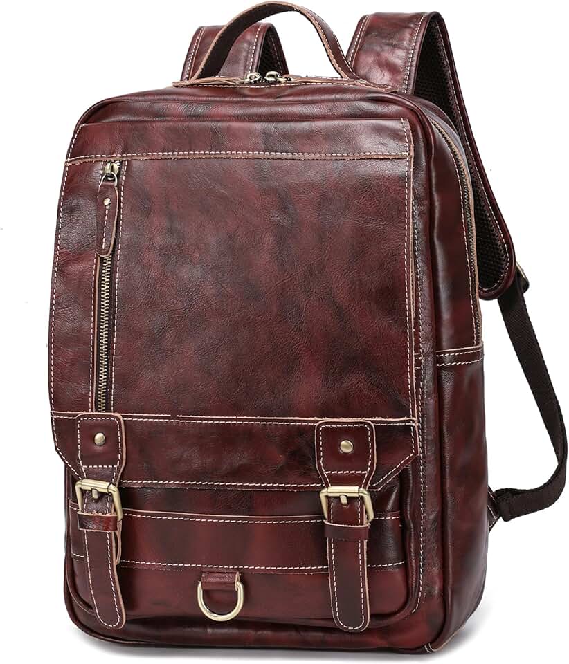LANNSYNE Vintage Genuine Leather Backpack For Men Fits up to 15" Laptop Travel Hiking Rucksack COFFEE