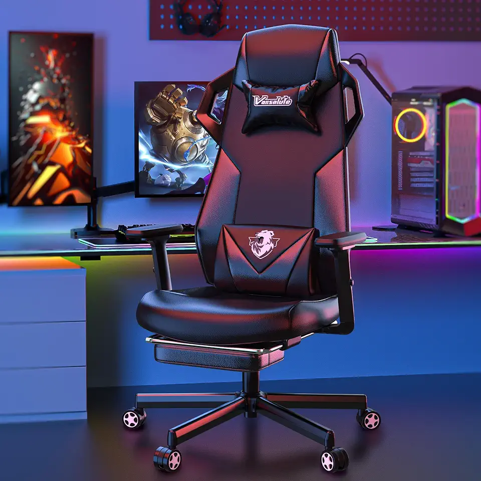 Gaming Chair, Computer Chair with Footrest and Lumbar Support, PU Leather High Back Adjustable Game Chair with Adjustable Armrest and Headrest Swivel Task Chair for Office or Gaming