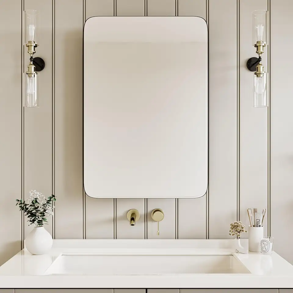 Vintage-Style Bathroom Wood Black Cabinet with 17.5''x29'' Curved Mirror, Recessed Medicine Cabinet, Bathroom Storage Cabinet