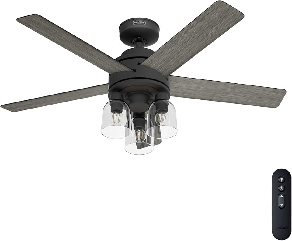 Lochemeade 52-inch Indoor Matte Black Ceiling Fan with Dimmable LED Light Kit, Remote, 3-speed WhisperWind Motor, 52650
