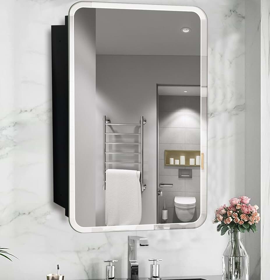 Matt Black Rectangle Recessed Bathroom Medicine Cabinet with 22"x30" Frameless Bevelled Edge Mirror,Recessed or Surface Mount Bathroom Wall Cabinet, Beveled Edges