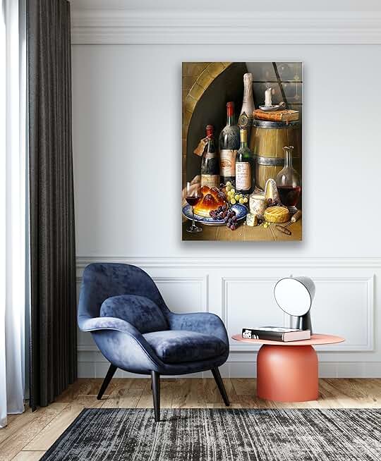 My Photostation.com 27.5Wx30H''Tempered Glass Wall Art Kitchen Decor Wine Home Decor Glass Printing Extra Large Wall Art Gifts for her Kitchen Wall Art Wine Barrel Art