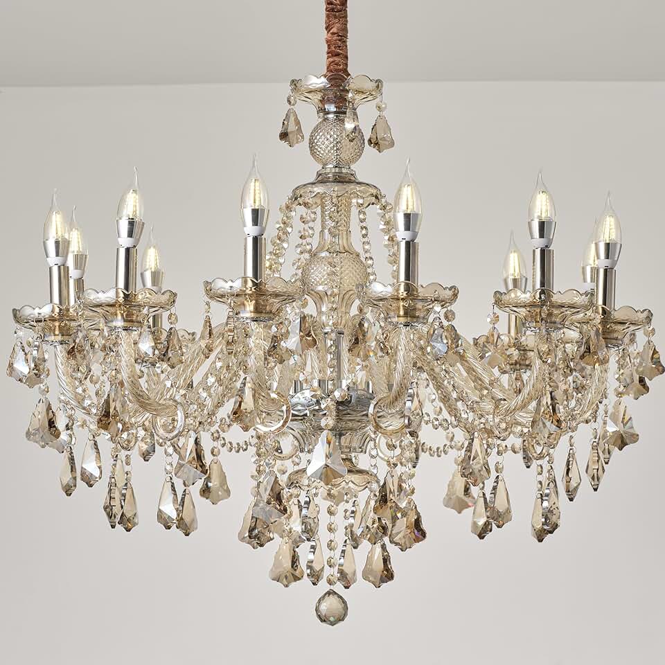 Cognac 12 Lights K9 Crystal Chandelier Modern Luxurious Light Candle Pendant Lamp Ceiling Living Room Lighting for Dining Living Room 28x32 Inch.(Color:Cognac) with 12pcs 5W E12 LED Bulbs.