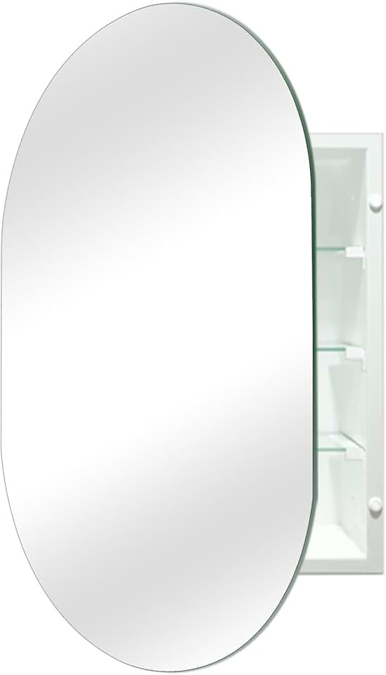 Bathroom Medicine Cabinet with 20"x30" Frameless Mirror, Oval Frameless Mirror Cabinet,Wall Mounted Cabinet for Bathroom Toilet Kitchen,Recess or Surface Mount Installation