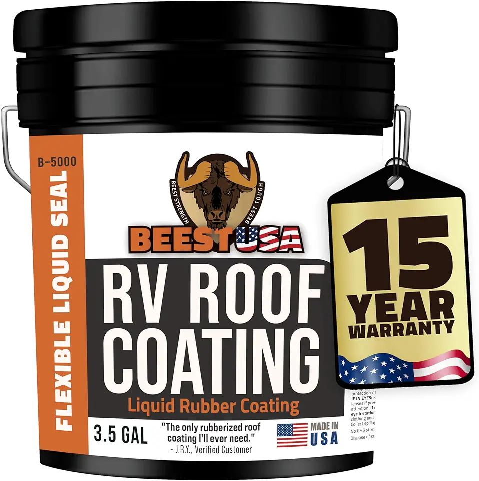 BEEST RV Roof Coating, 3.5 Gallon Temperature Reducing White RV Roof Sealant, Flexible Trailer Camper & Metal Roof Coating & RV Sealant, Liquid Rubber RV Roof Sealant Waterproof, EPDM, TPO Roof Sealer