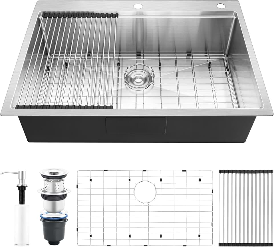 33 x 22 Inch Drop In Kitchen Sink 18/10 Stainless Steel Single Bowl Farmhouse Kitchen Sink