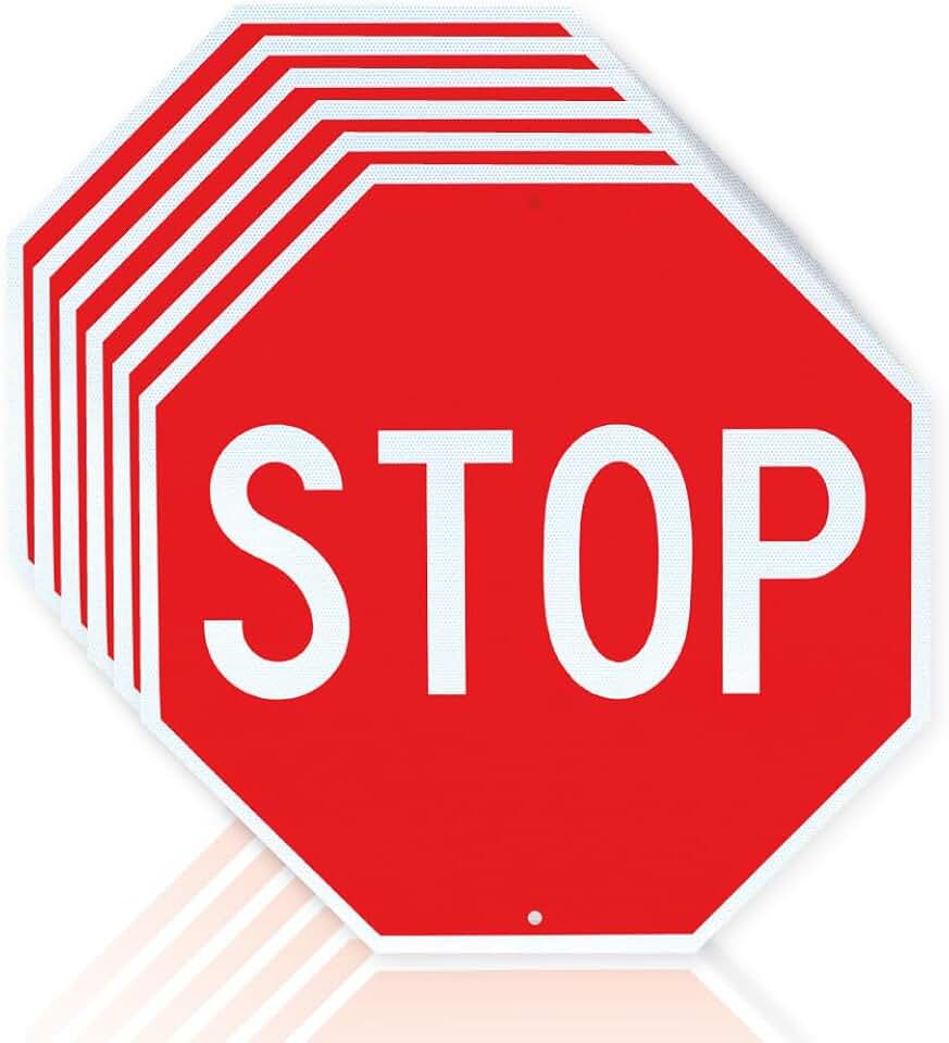 OLANZU 6 Pack Stop Sign 30”x 30” - 0.08 Inch High Intensity Prismatic Aluminum - Honeycomb Reflective Road Sign - UV Protected Street Signs - Rust Free Metal Signs for Control & Safety