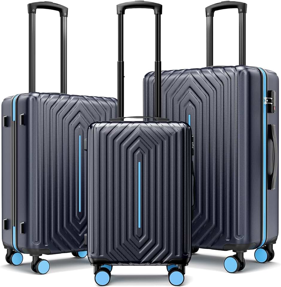 Luggage Sets Hardside Lightweight Suitcase with Spinner Wheels TSA Lock, 3-Piece Set(20/24/28inch) Blue
