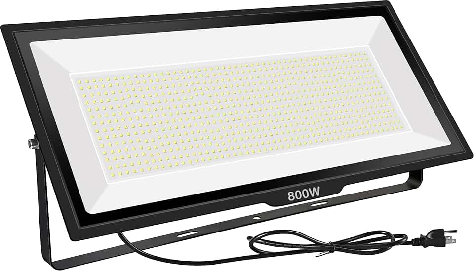 800W LED Flood Light, Outdoor Waterproof IP66 with Plug, 6000K Daylight White Super Bright Security Floodlight for Yard, Garden, Garages
