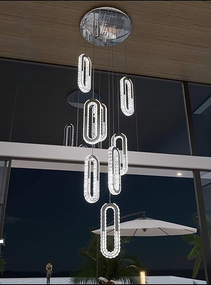 Modern Chandelier 8 Rings Silver Chandelier Lighting Fixture High Ceiling Chandelier Suitable for Living Room Staircase Villa