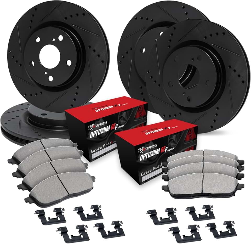 R1 Concepts Front Rear Brakes and Rotors Kit |Front Rear Brake Pads| Brake Rotors and Pads| Optimum OEp Brake Pads and Rotors |Hardware Kit WHUH2-31093
