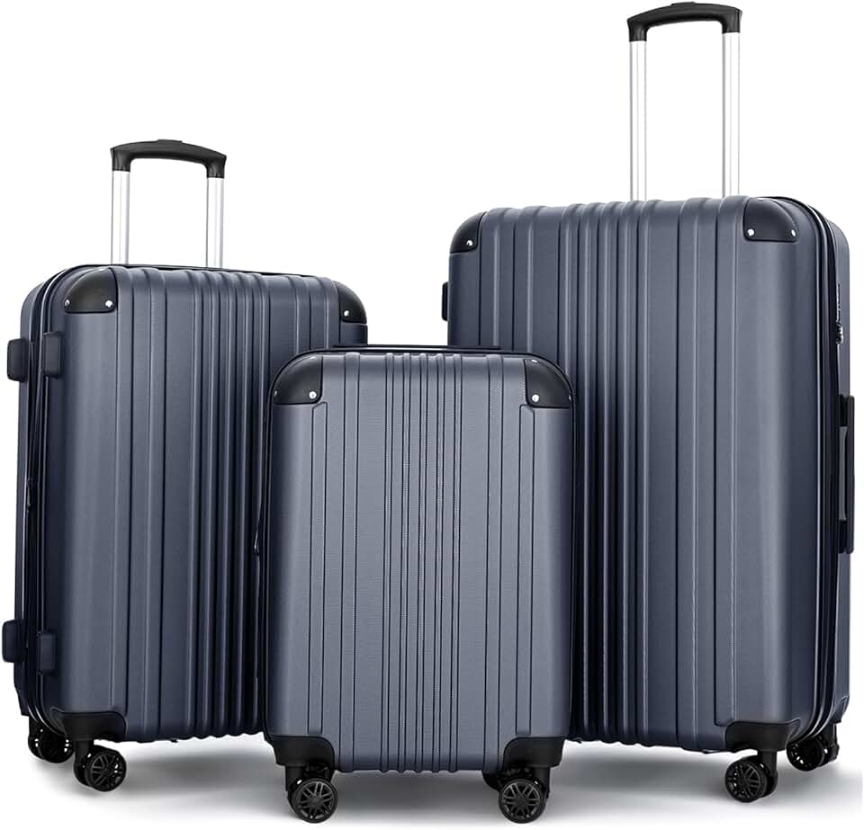 Luggage Sets 3 Pieces Expandable with Spinner Wheels Hard Suitcases Lightweight with Wheels Travel Luggage TSA Approve (Navy Suitcase Set)