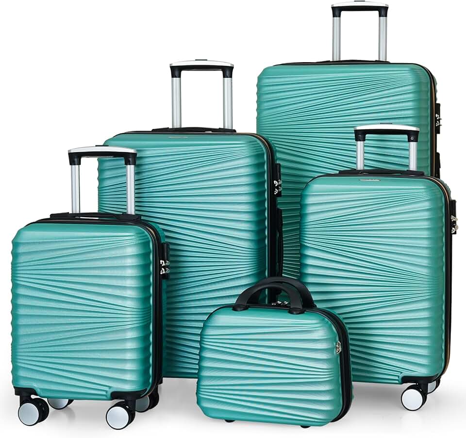 LARVENDER Luggage 5 Piece Sets, Hard Shell Luggage Set Expandable Carry on Luggage Suitcase with Spinner Wheels Durable Lightweight Travel Set for Men Women(14/18/20/24/28, Green)