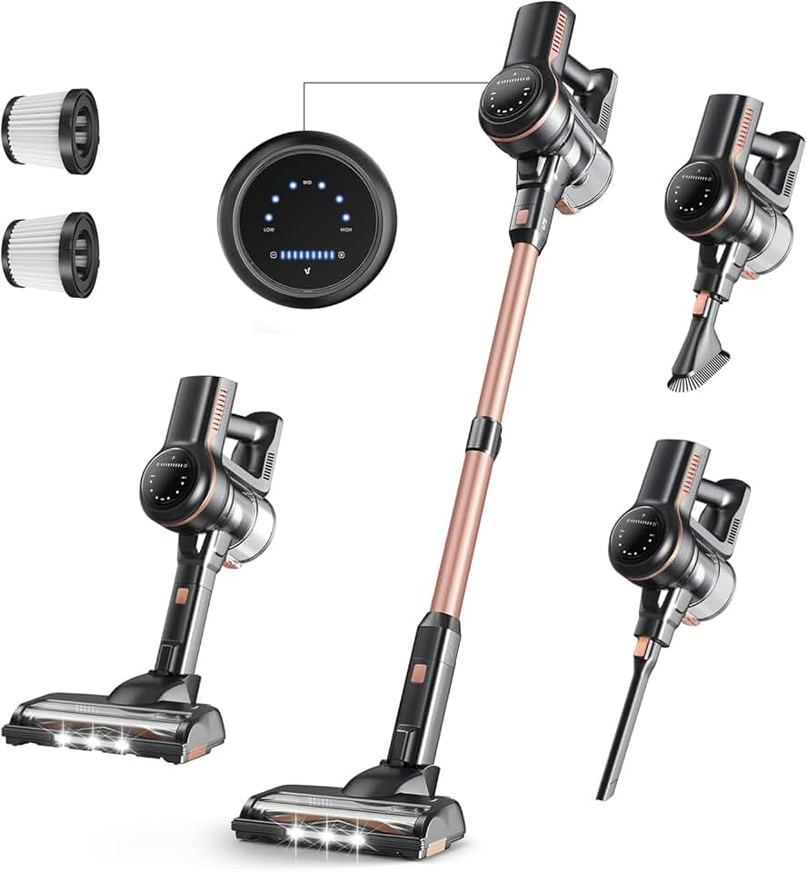 Cordless Vacuum Cleaner, 26Kpa Lightweight Cordless Vacuum, 265W Rechargeable Stick Vacuum with 2500m-Ah Battery, 45min Runtime Versatile Powerful Stick Vacuum for Pet Hair Hardfloor Carpet (Gold)