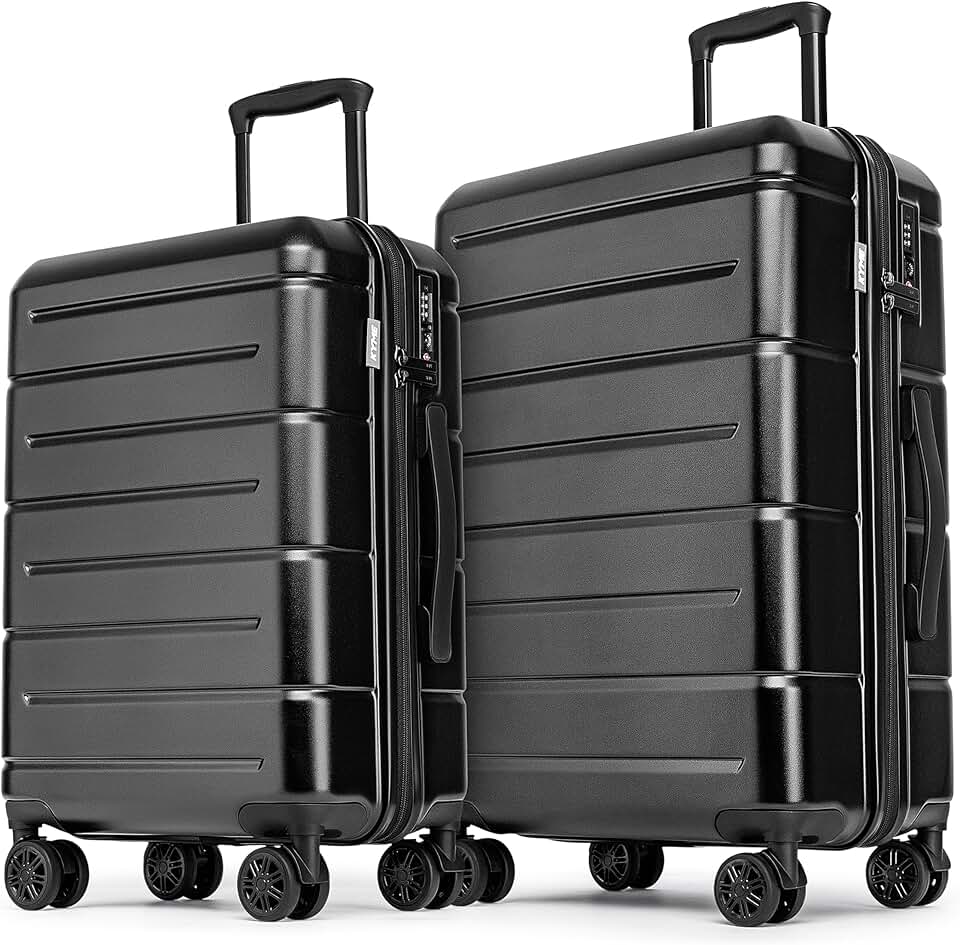 KYME Hard Shell 2 Piece Luggage Sets with Cup Holder,Travel Lightweight Suitcase Sets with Spinner Wheels & TSA Lock,Black