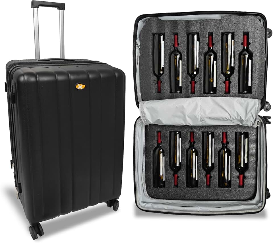 Wine Suitcase for Airplanes, 12 Bottle Capacity, Durable Wine Shipping Box, Wine Travel Case with TSA Lock, Versatile Wine Carrier with Removable Inserts and Silent Spinner Wheels