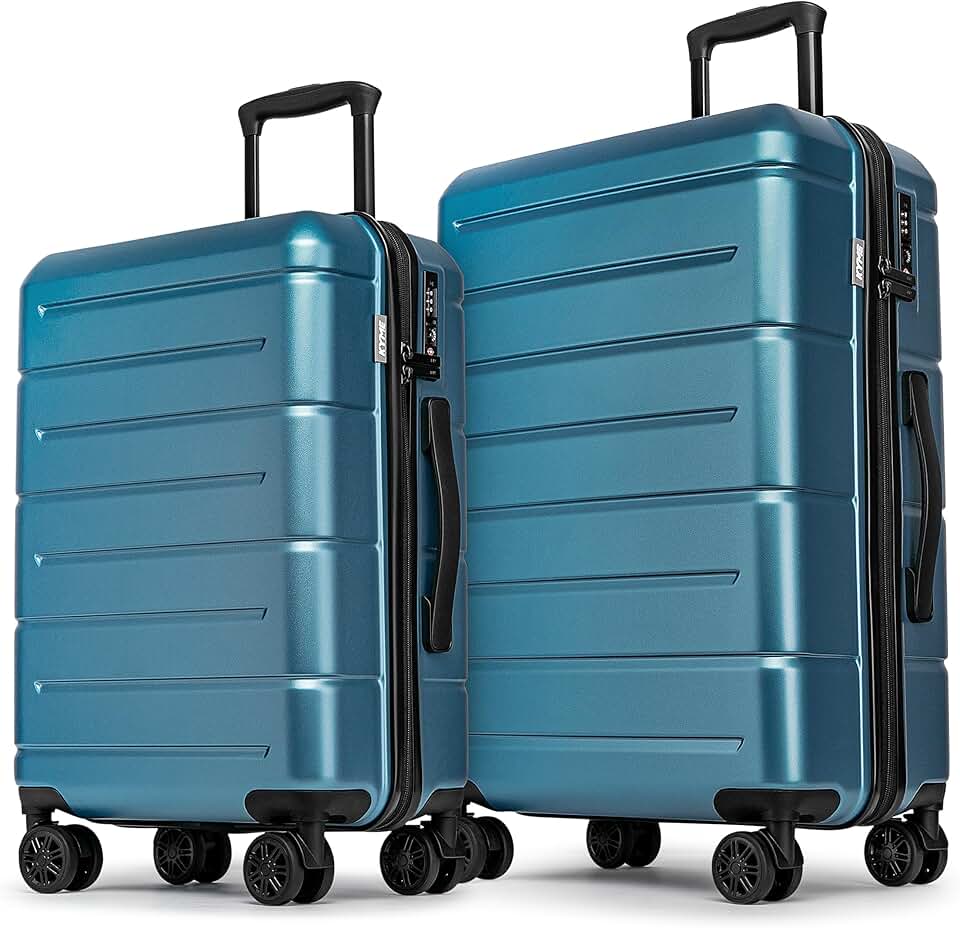 KYME Hard Shell 2 Piece Luggage Sets with Cup Holder,Travel Lightweight Suitcase Sets with Spinner Wheels & TSA Lock,Light Blue