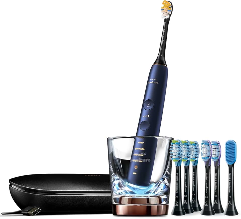 Philips Sonicare DiamondClean Smart 9700 Electric Toothbrush, Sonic Toothbrush with App, Pressure Sensor, Brush Head Detection, 5 Brushing Modes and 3 Intensity Levels, Lunar Blue, Model HX9957/71