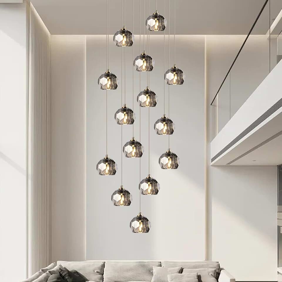Farmhouse Crystal Chandelier, Luxury Brass Hanging Lights High Ceiling, Large Raindrop Pendant Lighting for Staircase Living Room Dining Room Restaurant (14 Lights - Smoke Crystal)