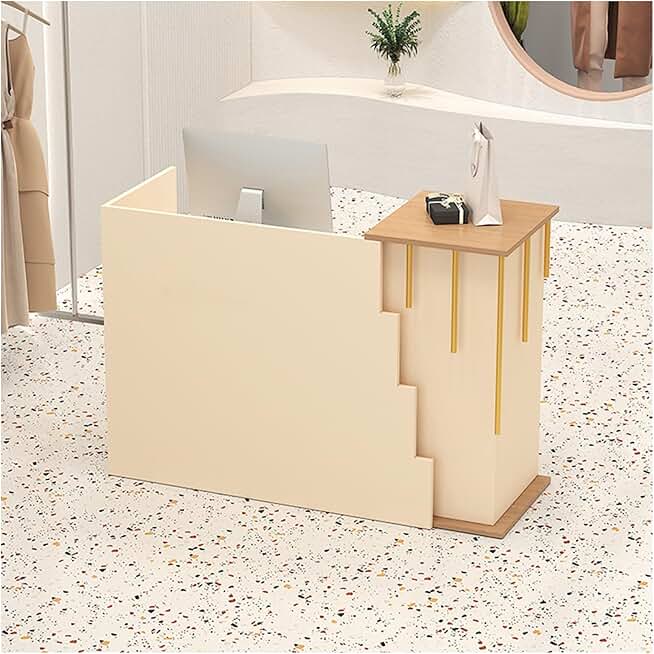 Small Reception Desk with Counter, Front Desk Reception Counter Retail Counter With Shelf & Lockable Drawers Front Reception Counter Desk for Checkout Lobby, Salon, Store Shop, Beauty Salon(Yellow,80*