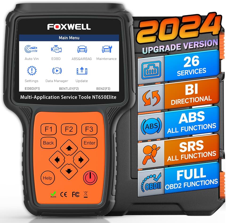 FOXWELL NT650 Elite Car Engine ABS SRS OBD2 Diagnostic Code Reader Full Bidirectional Scan Tool with 26 Service Reset Oil/EPB/SAS/TPMS/TPS/ABS Bleeding/Gear/Transmission Adaption/Battery Registration