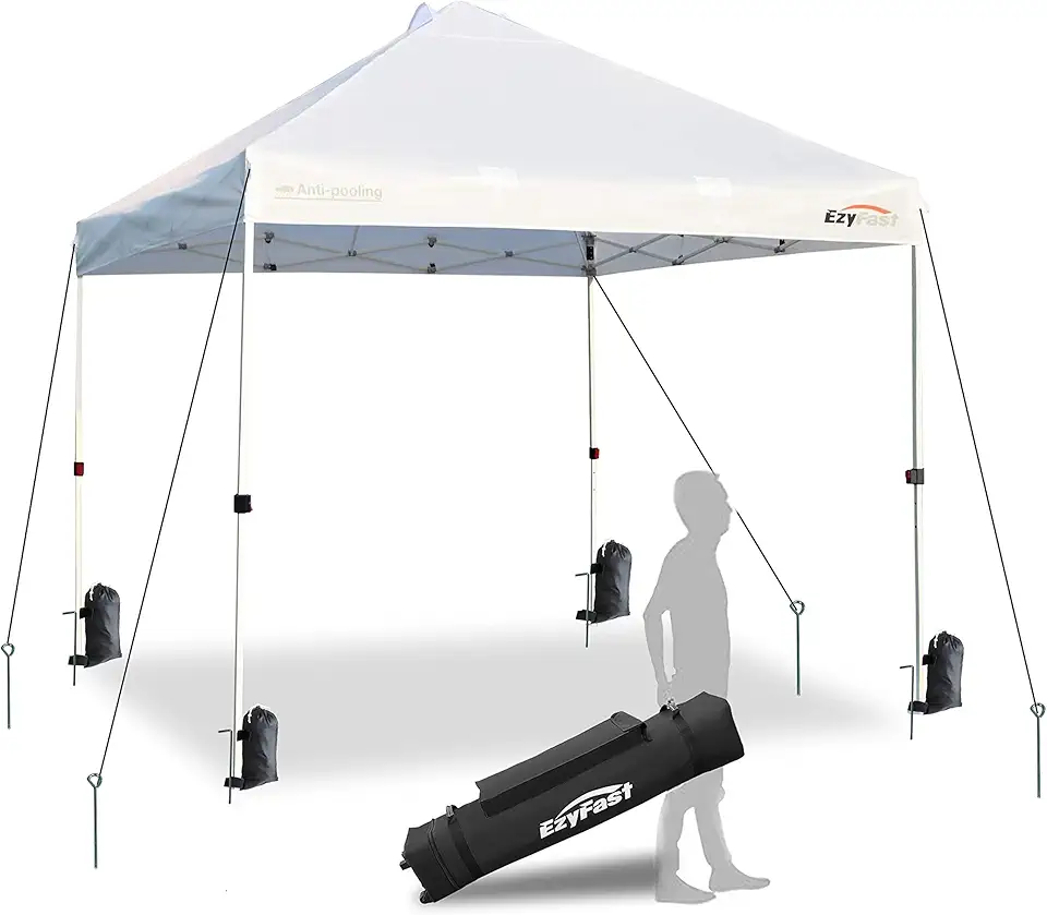 EzyFast Pro Commercial Pop Up Canopy Tent, Patented Umberlla Structure Instant Shelter, One Push Up Heavy Duty Portable Shade with Wheeled Carry Bag (10'x10', Commercial White)