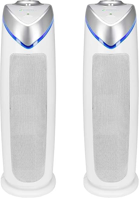 GermGuardian Air Purifier with HEPA 13 Filter, Removes 99.97% of Pollutants, Covers 743 Sq. Foot Room in 1 Hour, UV-C Light Helps Reduce Germs, 22 Inch, 2-Pack, White, AC4825W2PK