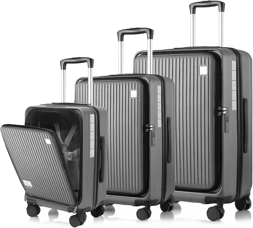 Luggage Sets 3 Piece, ABS Lightweight 20in/24in/28in Luggage, Expandable Carry On Suitcase Set with TSA Lock & Double Wheels, Front Open Hardshell Luggage Sets (Grey)