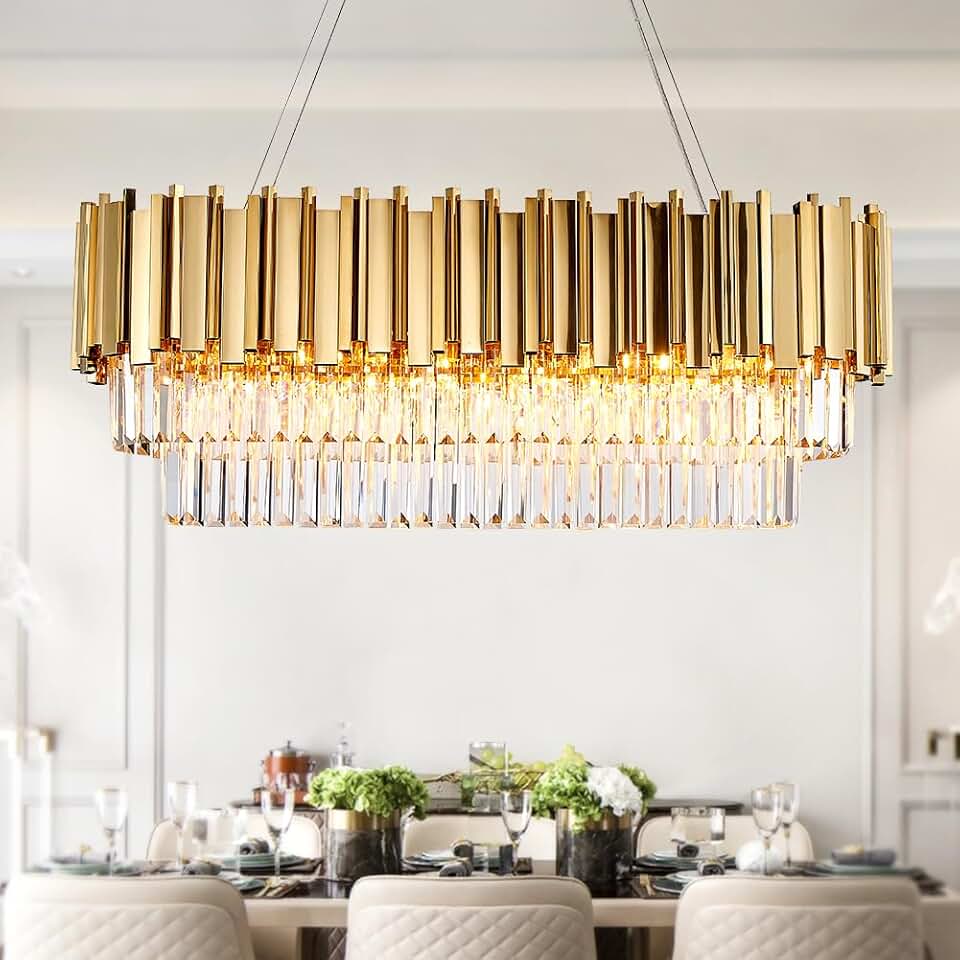 Modern Crystal Chandelier, Ceiling Pendant Light, Luxury Contemporary Gold Chandeliers for Dining Room, Kitchen Island, Living Room, 35.4"