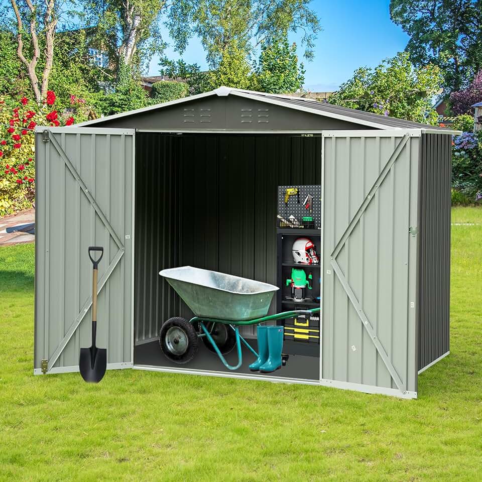 8' x 6' Outdoor Storage Shed with Air Vent and Large Size Door, Galvanized Metal Watereproof Tool Storage Cabinet, Tiny House Garden Tool Storage Shed for Backyard Patio Lawn, Grey