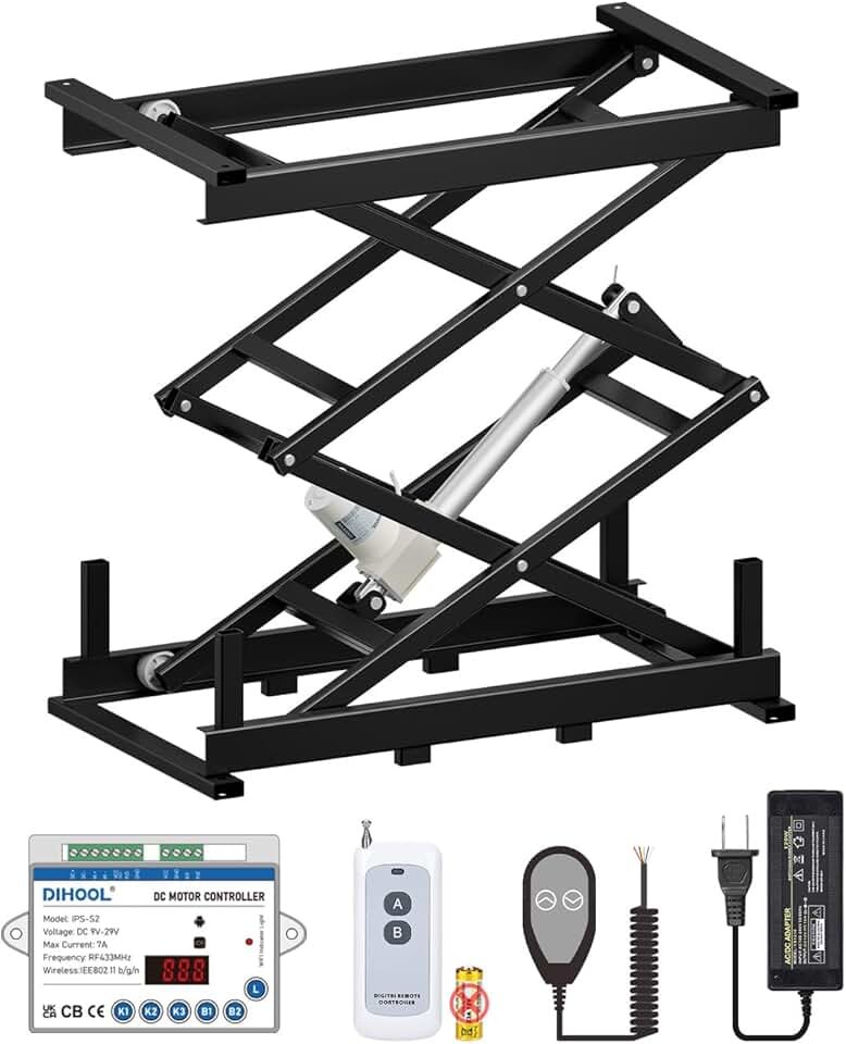 DIHOOL Electric Scissor Lift Table 140LB Load, 265-1270MM Height Adjustable Lifting Platform