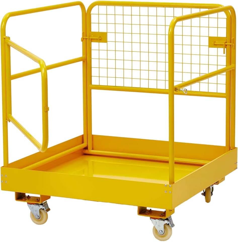 Forklift Safety Cage, 36"x36" inch Heavy Duty Collapsible Forklift Work Platform, 1200LBS Capacity with 4 Universal Wheels Aerial Platform Collapsible Lift Basket Aerial Rails for Lifting Loader