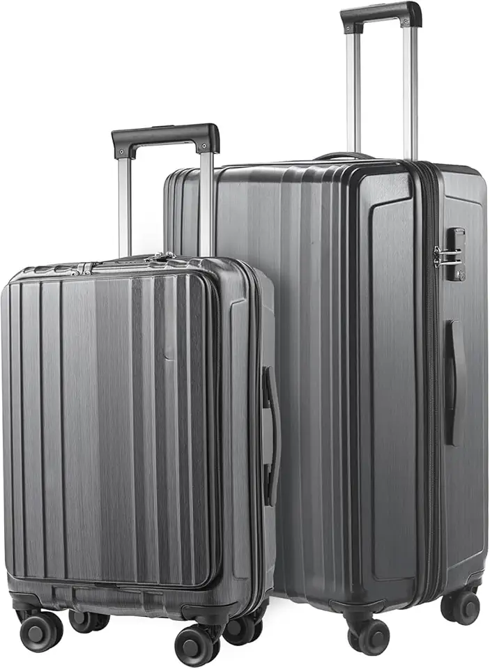 2 Piece Luggage Set 20/28 Inch, 20” Carry On with Front Pocket, 28” with Expandable Zipper, ABS+PC Hardshell Lightweight Suitcase, Silver Gray